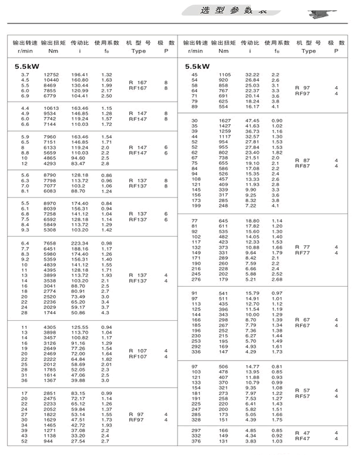 R斜齒輪減速機選型參數(shù)表5.5KW